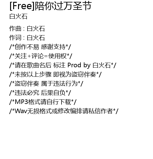 | /*请在歌曲名后 标注 Prod by 白火石*/ | |