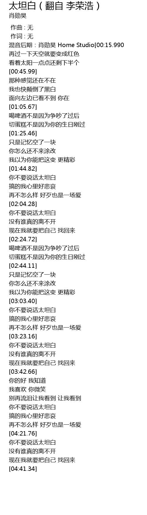 | [01:46.50] | nǐ bú yào shuō huà tài tǎn bái |