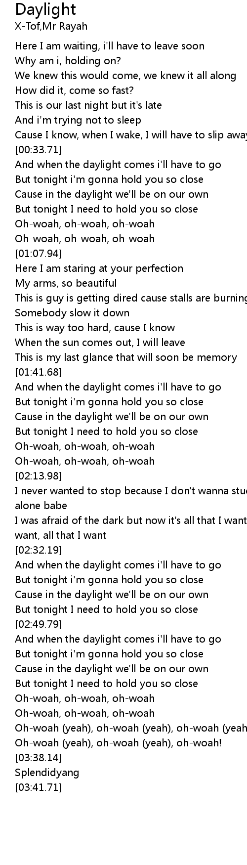 | [00:36.01] | And when the daylight comes i'll have to go |