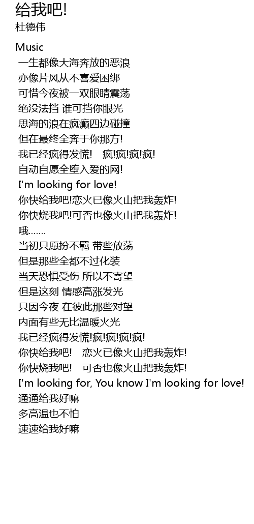 | 你快给我吧! 恋火已像火山把我轰炸! | |