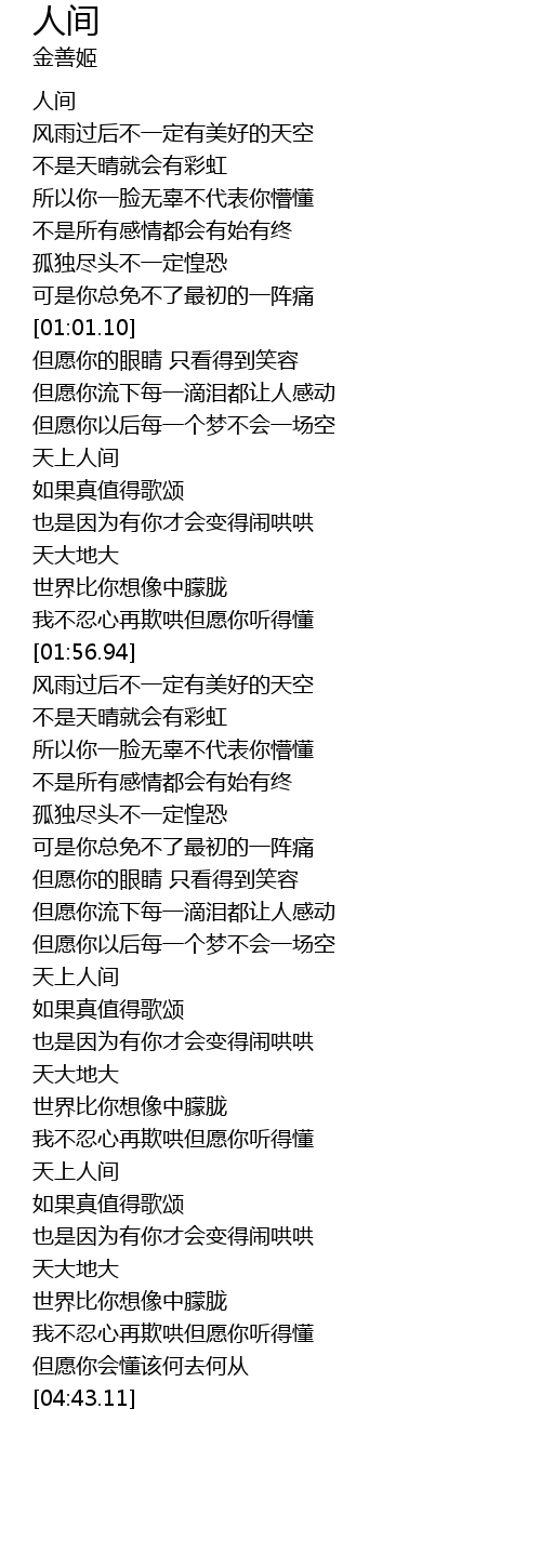 | [04:22.30] | 我不忍心再欺哄但愿你听得懂 |