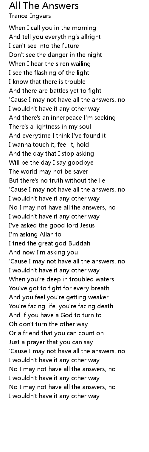 All The Answers Lyrics