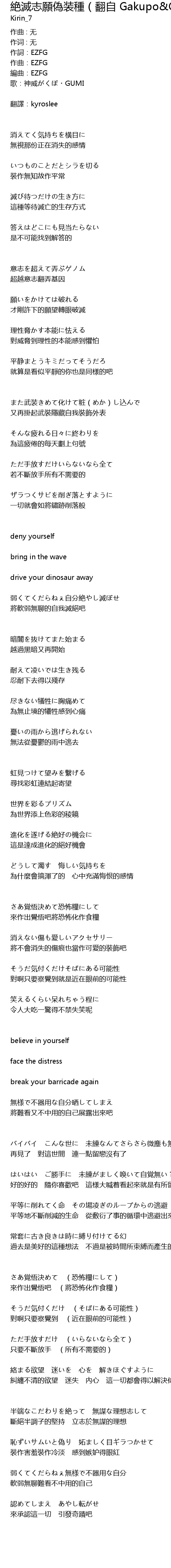 | 弱くてくだらねぇ自分絶やし滅ぼせ | |
