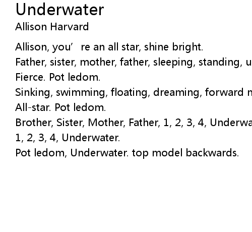 | Father, sister, mother, father, sleeping, standing, underwater. | |