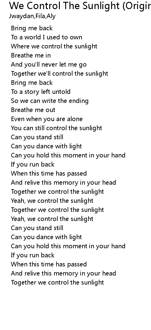 | [03:57.482] | Yeah, we control the sunlight |
