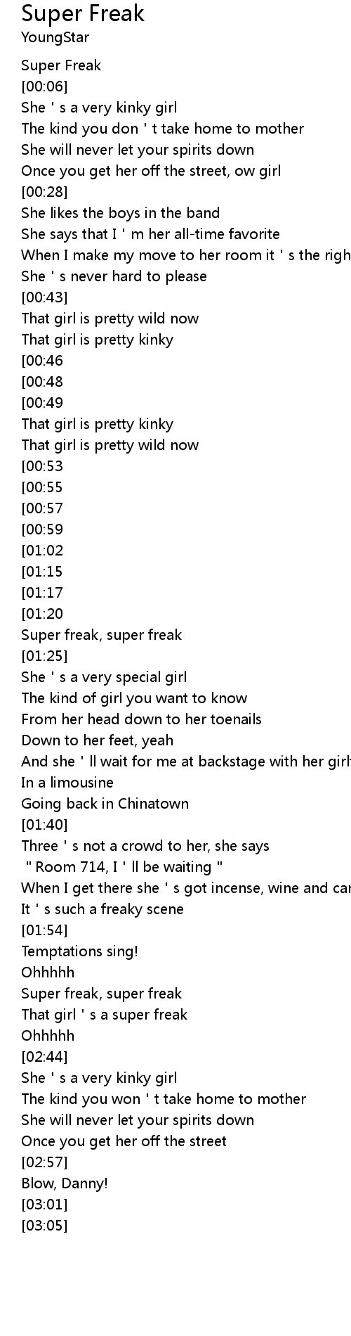 | [02:39] | That girl's a super freak |