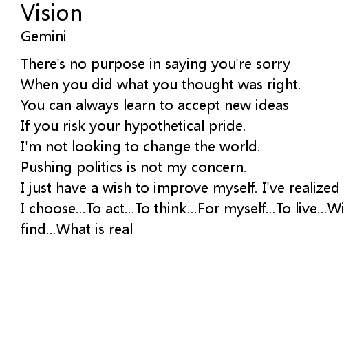 | I choose...To act...To think...For myself...To live...With no regrets...And to find...What is real |