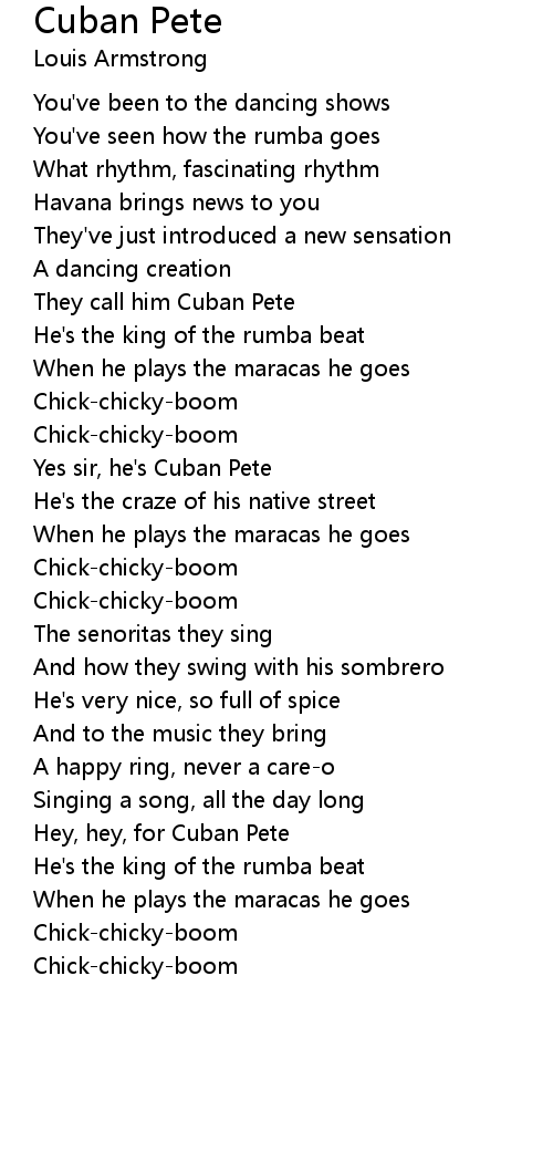 Hey, hey, for Cuban Pete |