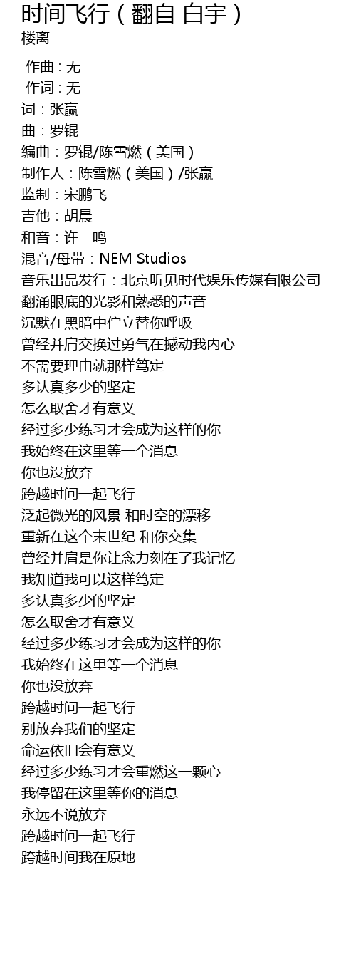 | [02:01.77] | kua yue shi jian yi qi fei xing |