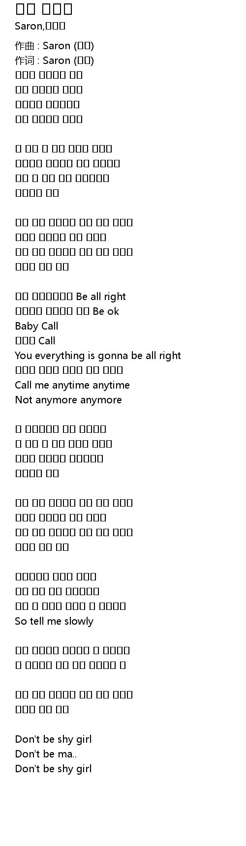 | 作词 : Saron (새런) | |