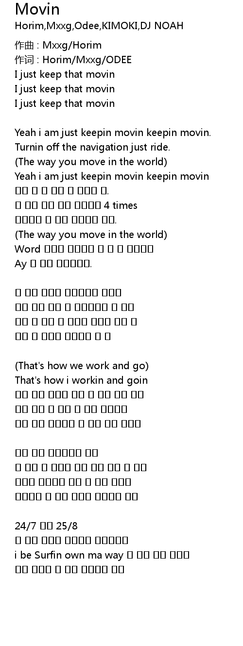 | Yeah i am just keepin movin keepin movin | |