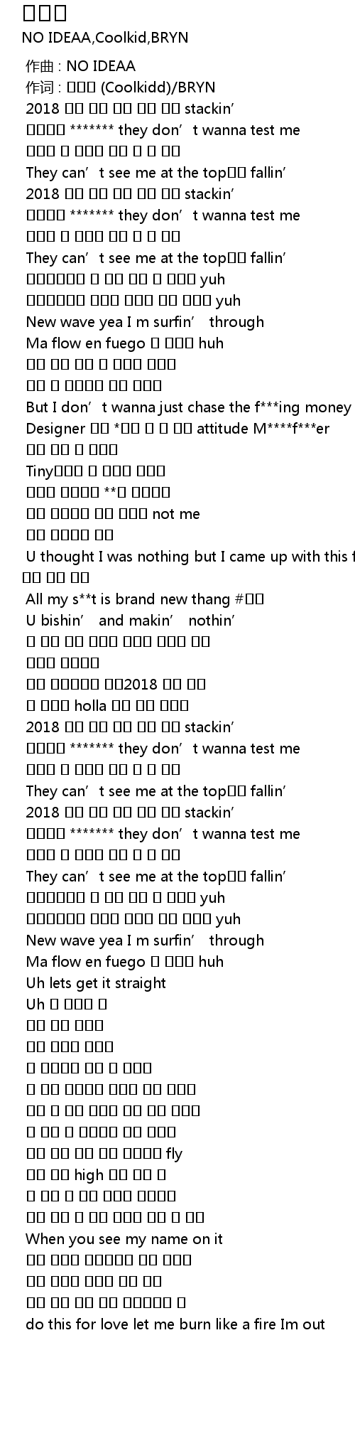 | [02:00.208] | 의심하는 ******* they don’t wanna test me |