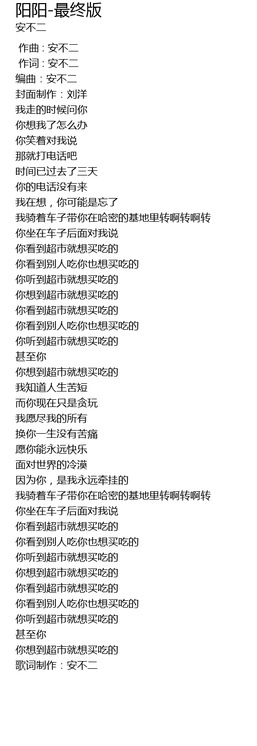 | [03:40.874] | 歌词制作:安不二 |