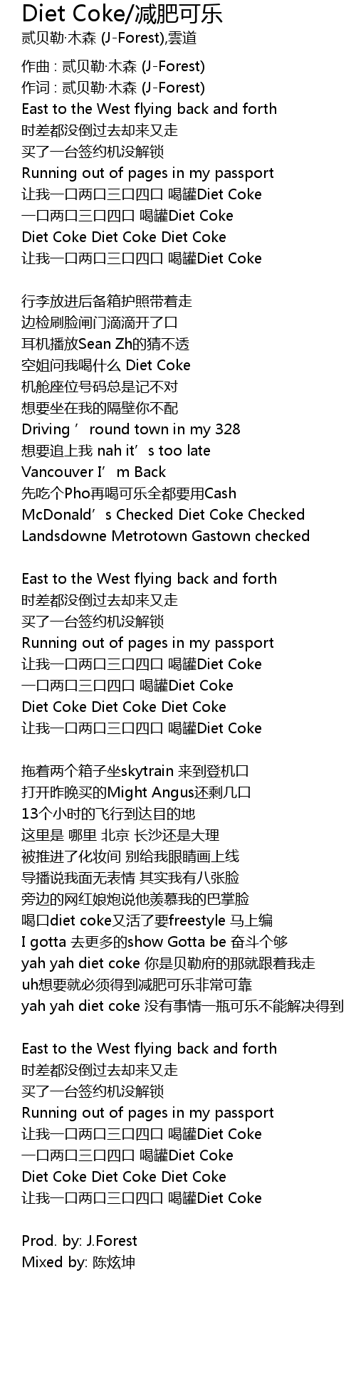 | Song | Diet Coke/减肥可乐 |