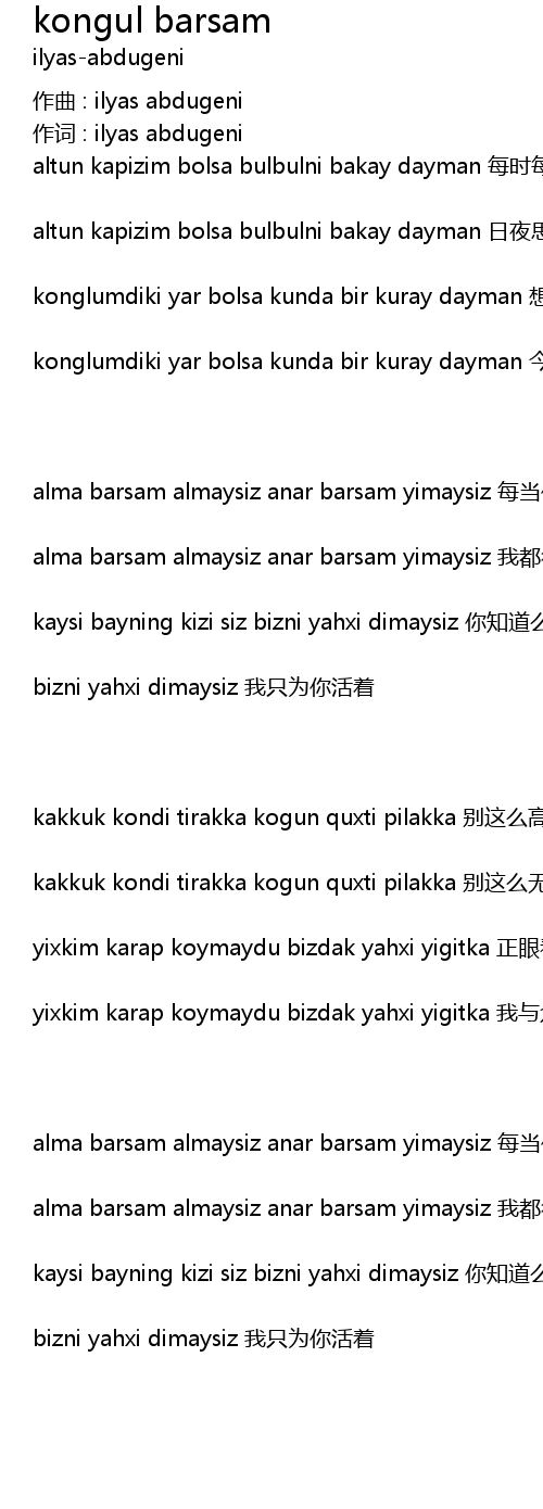 | 作词 : ilyas abdugeni | |