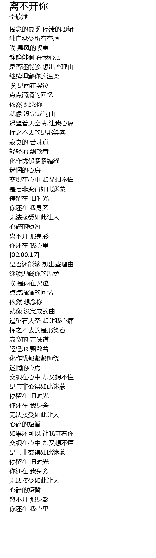 | [00:28.21] | 倦怠的夏季 停滞的思绪 |