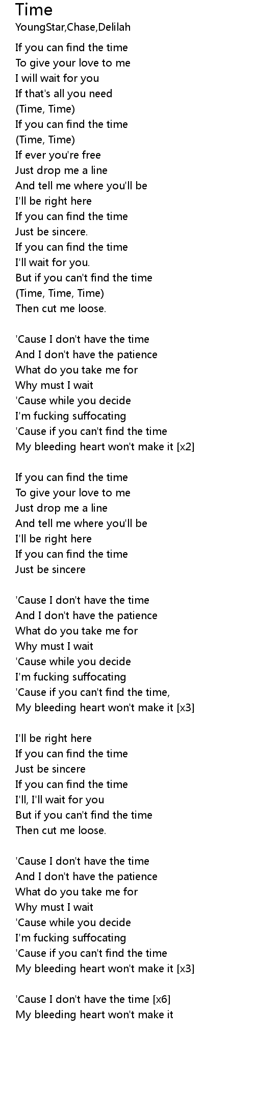 | 'Cause I don't have the time [x6] | |