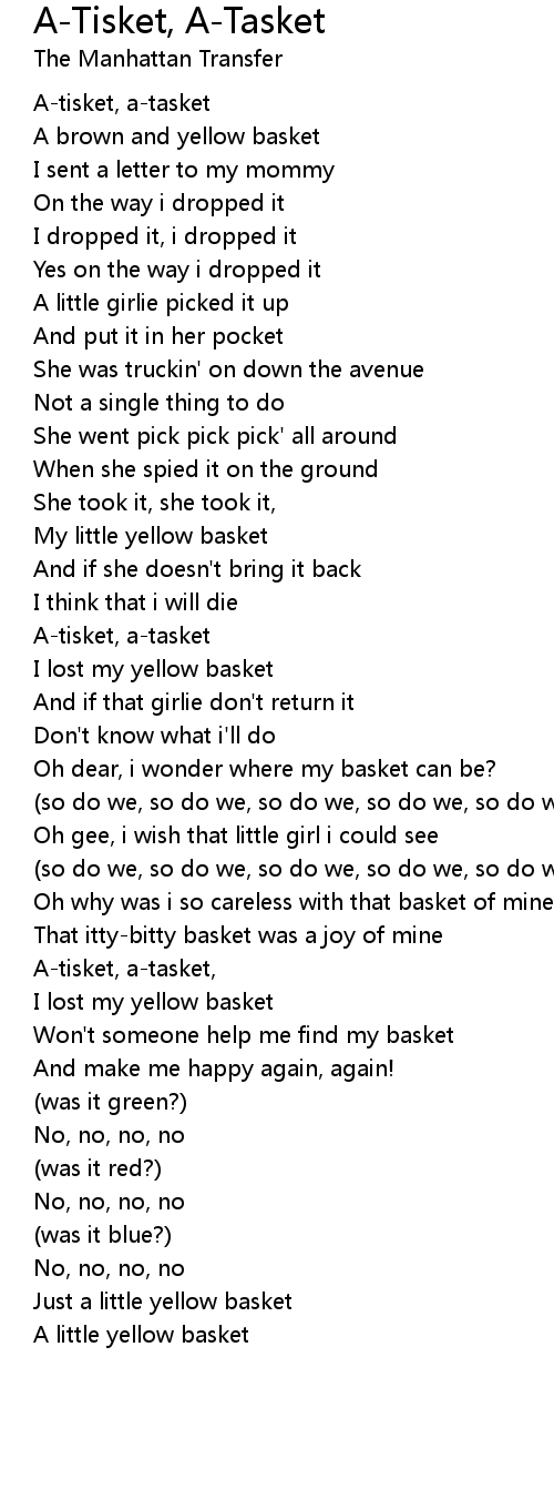 A-tisket, a-tasket, |