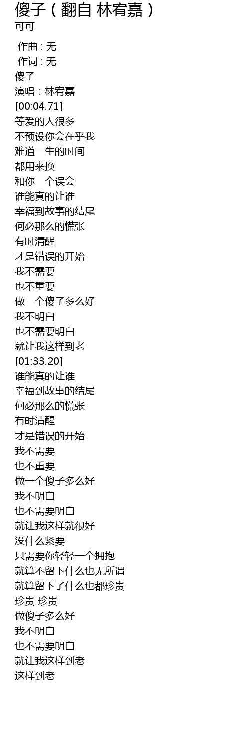 | [03:02.61] | zuò shǎ zi duō me hǎo |