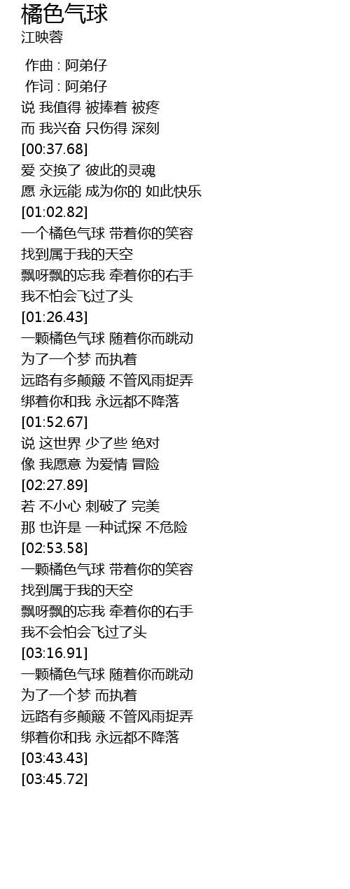 | [02:55.24] | 一颗橘色气球 带着你的笑容 |