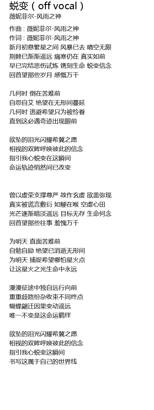 | 作词 : 薇妮菲尔-风雨之神 | |