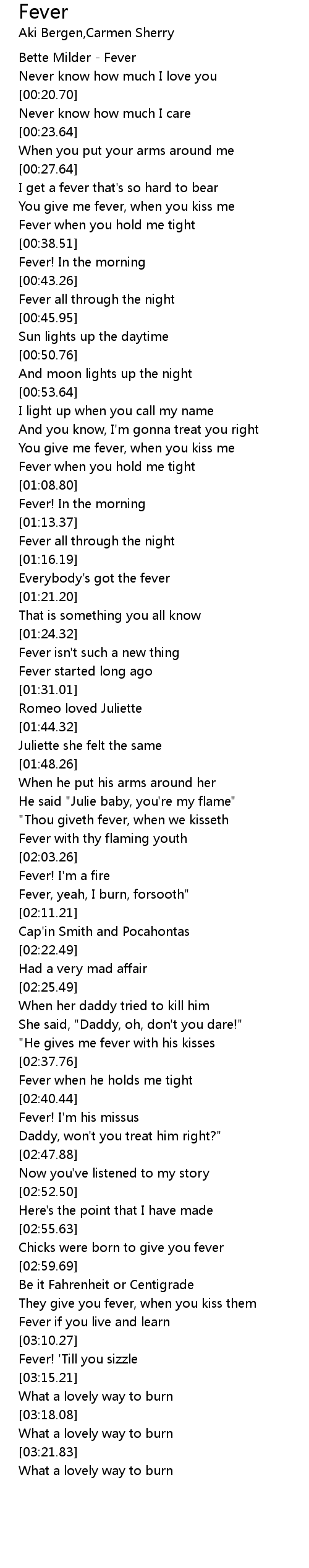 [03:11.51] Fever! 'Till you sizzle