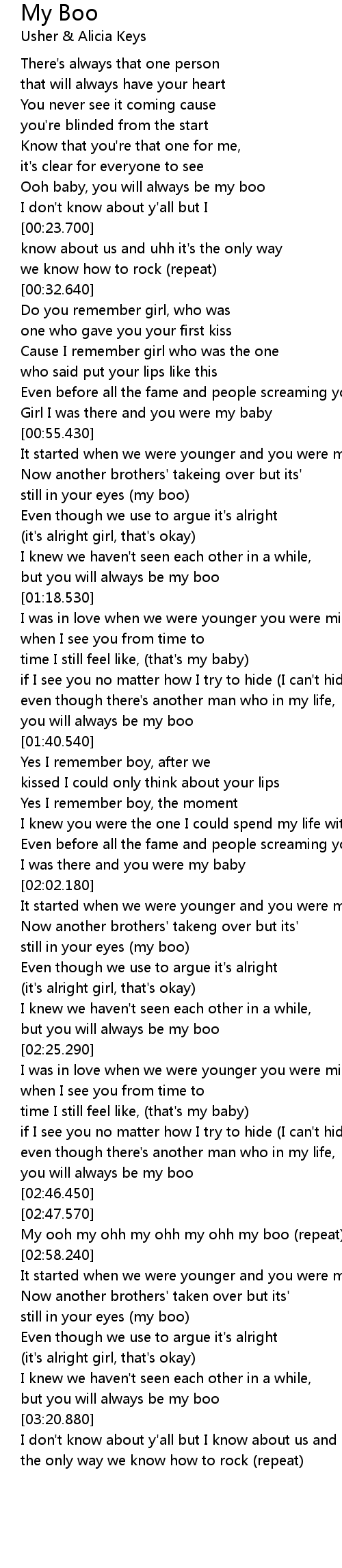My ooh my ohh my ohh my ohh my boo (repeat) |