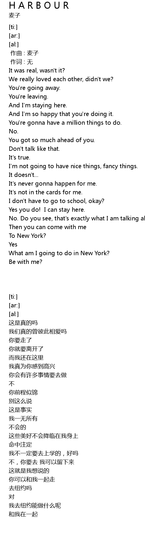 | Song | H A R B O U R |
