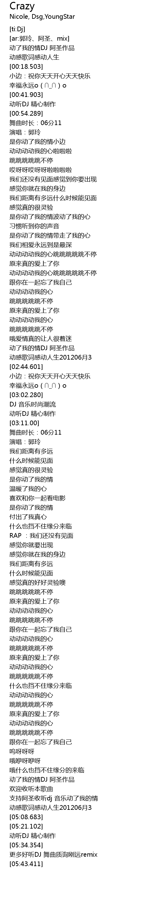| [05:37.251] | 更多好听DJ 舞曲质询刚远remix |