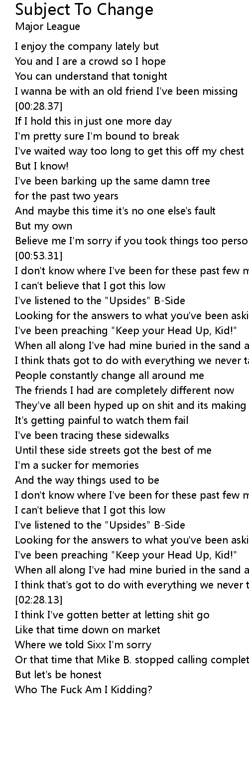 I've been preaching "Keep your Head Up, Kid!" |