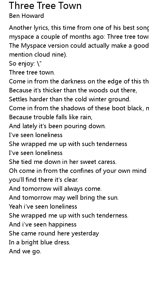 Another lyrics, this time from one of his best songs. He published it on his myspace a couple of months ago: Three tree town. |
