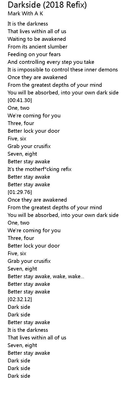 Better stay awake, wake, wake... |