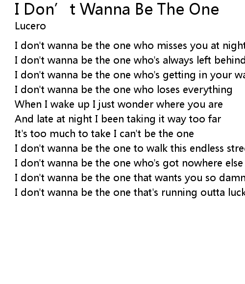 I Don’t Wanna Be The One I Don' t Wanna Be The One Lyrics