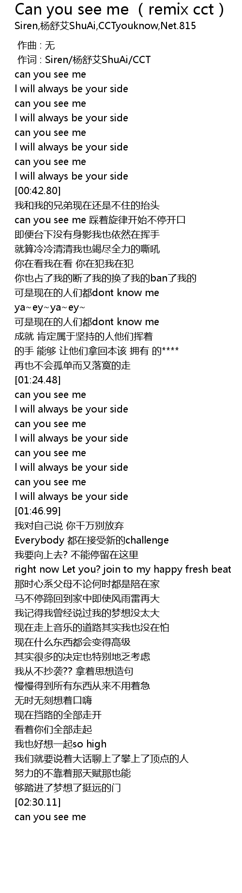 | [00:45.87] | can you see me 踩着旋律开始不停开口 |
