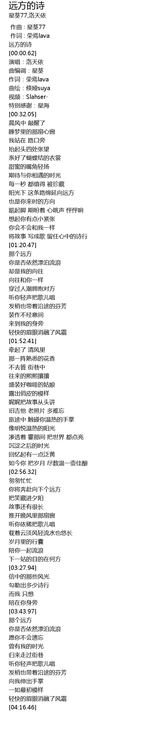 | [01:16.54] | 将故事 写成歌 留住心中的诗行 |