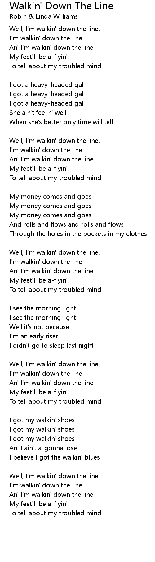 Well, I'm walkin' down the line, |