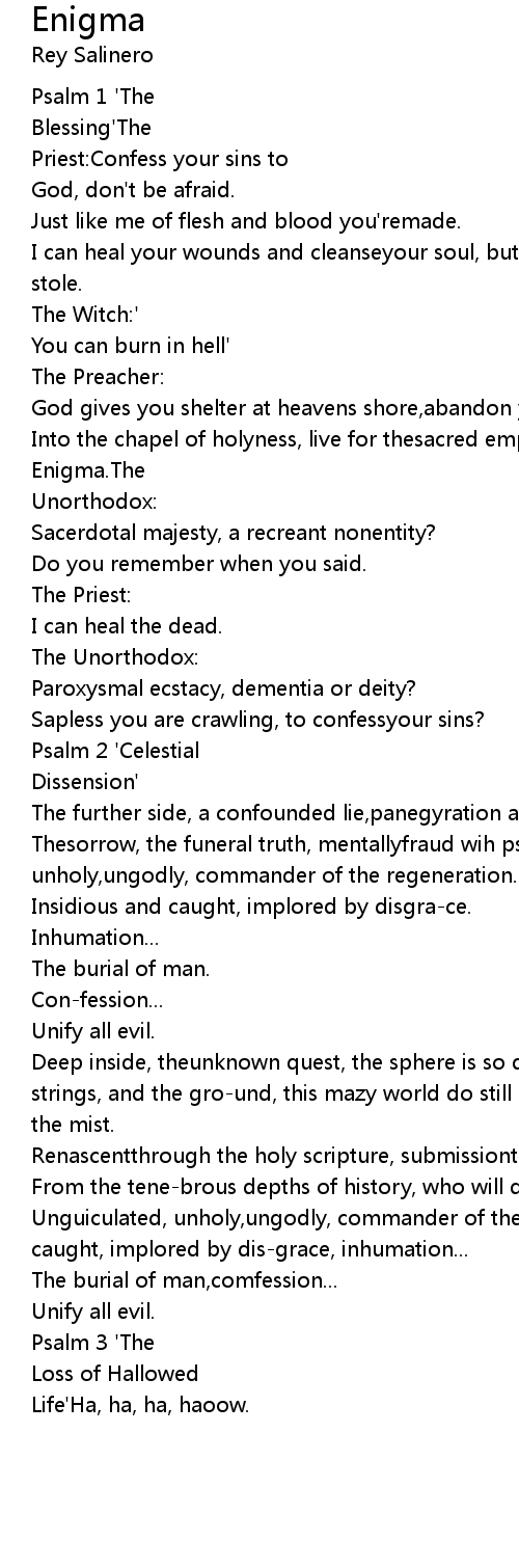 Thesorrow, the funeral truth, mentallyfraud wih pseudo relics, enigma, unholy,ungodly, commander of the regeneration.