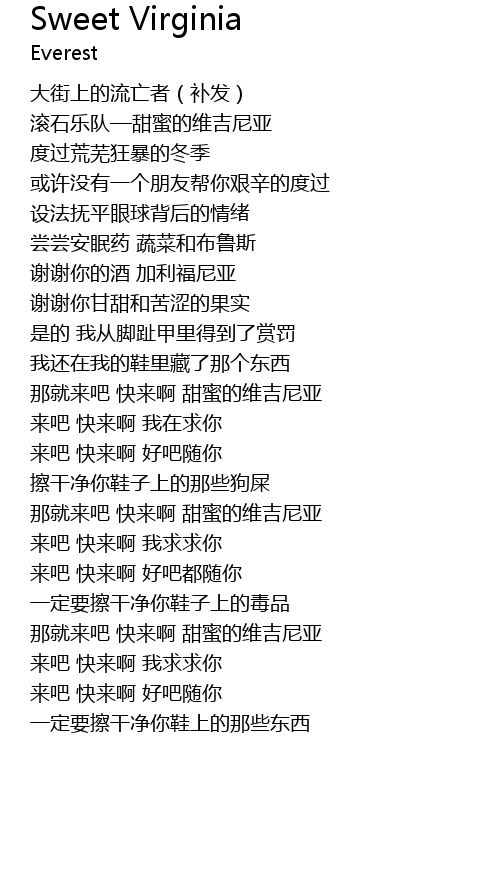 | [03:45.92] | 那就来吧 快来啊 甜蜜的维吉尼亚 |