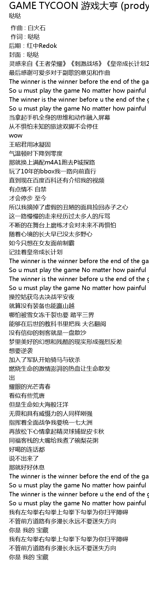 | Song | GAME TYCOON 游戏大亨 (prody by 白火石) |