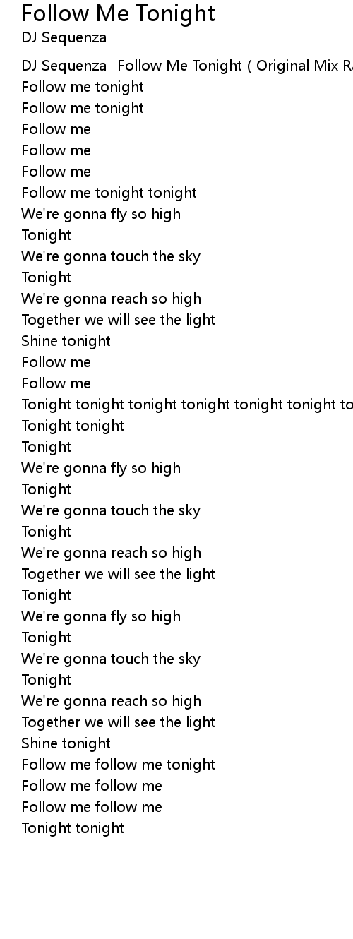 | [00:00.47] | DJ Sequenza Follow Me Tonight Original Mix Radio Edit |