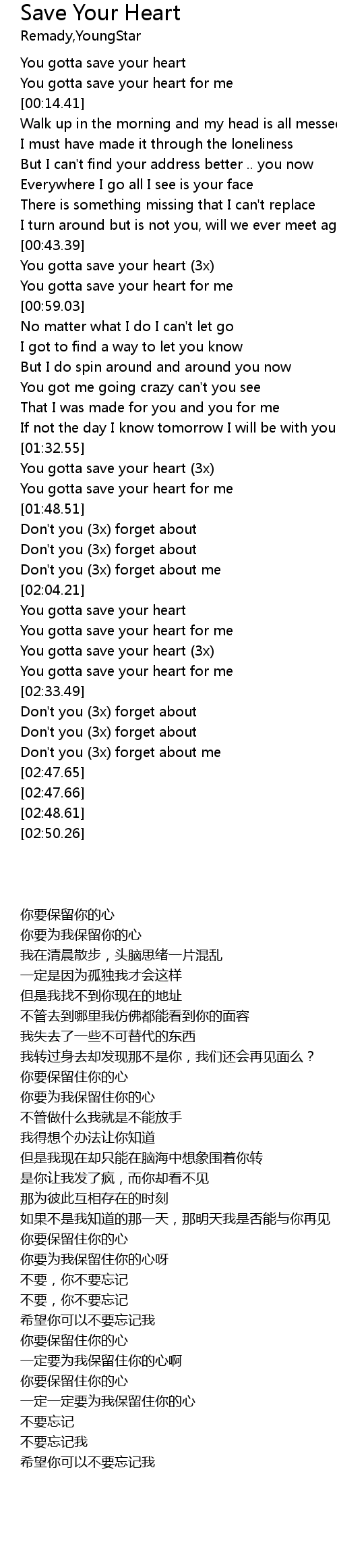 | [00:44.30] | You gotta save your heart (3x) |