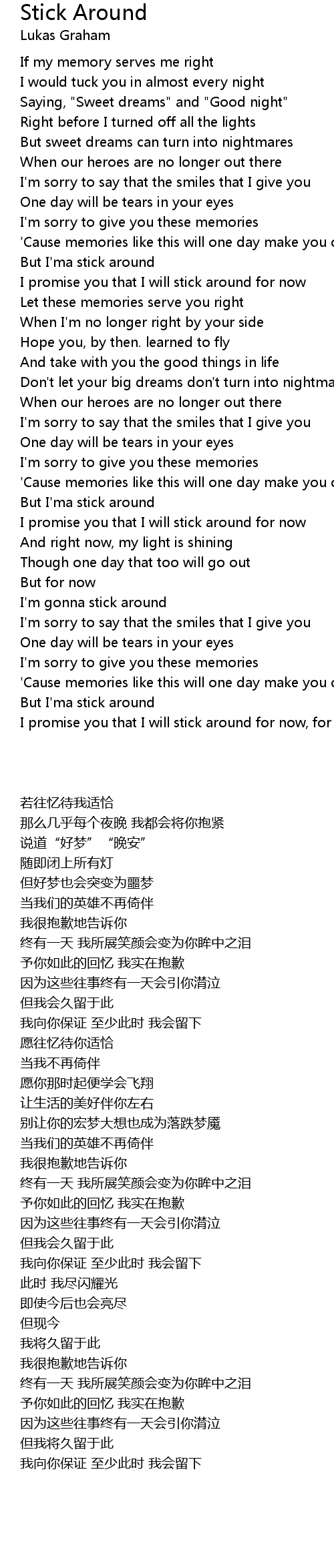 I promise you that I will stick around for now, for now |