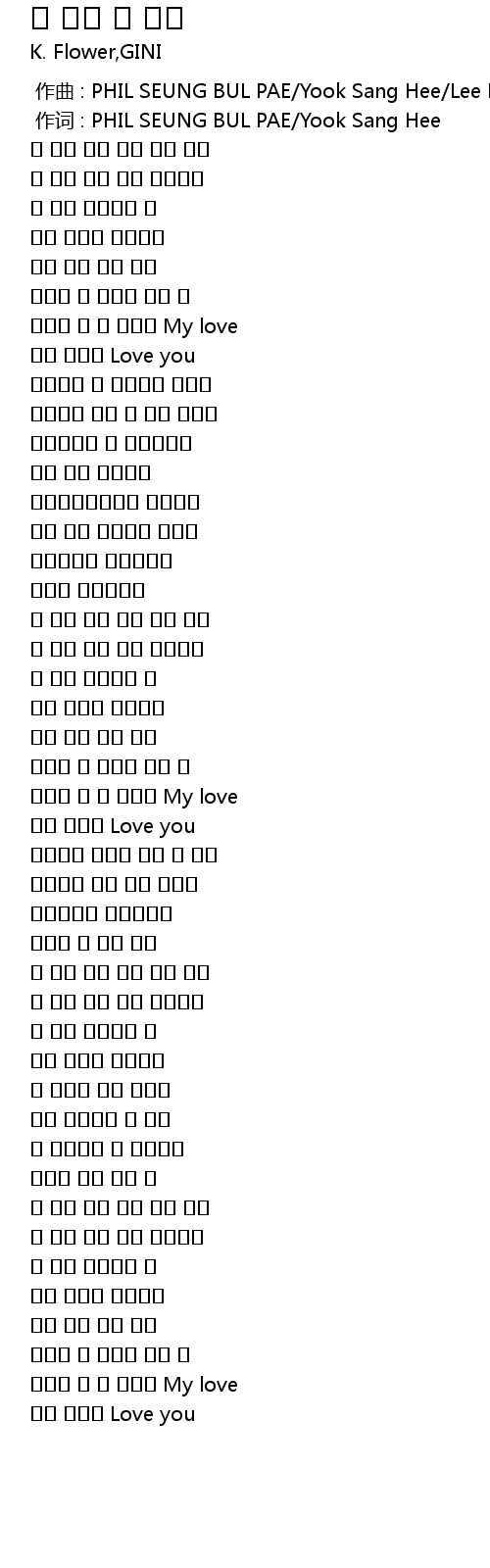 | [00:01.000] | 作词 : PHIL SEUNG BUL PAE/Yook Sang Hee |