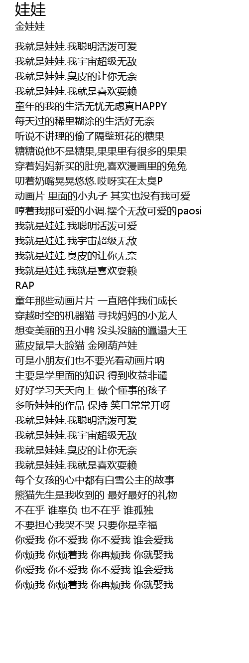 | [01:40.07] | 我就是娃娃.我聪明活泼可爱 |