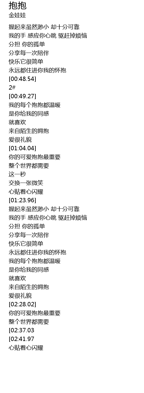 | [02:29.56] | 你的可爱抱抱最重要 |