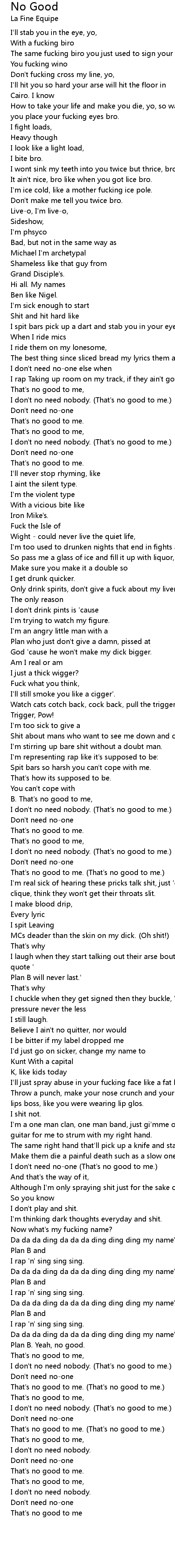 I don't need no-one (That's no good to me.) |