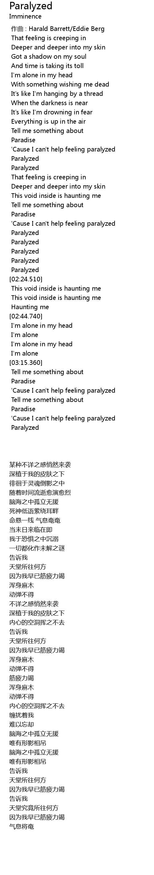 | [03:48.360] | Paralyzed |