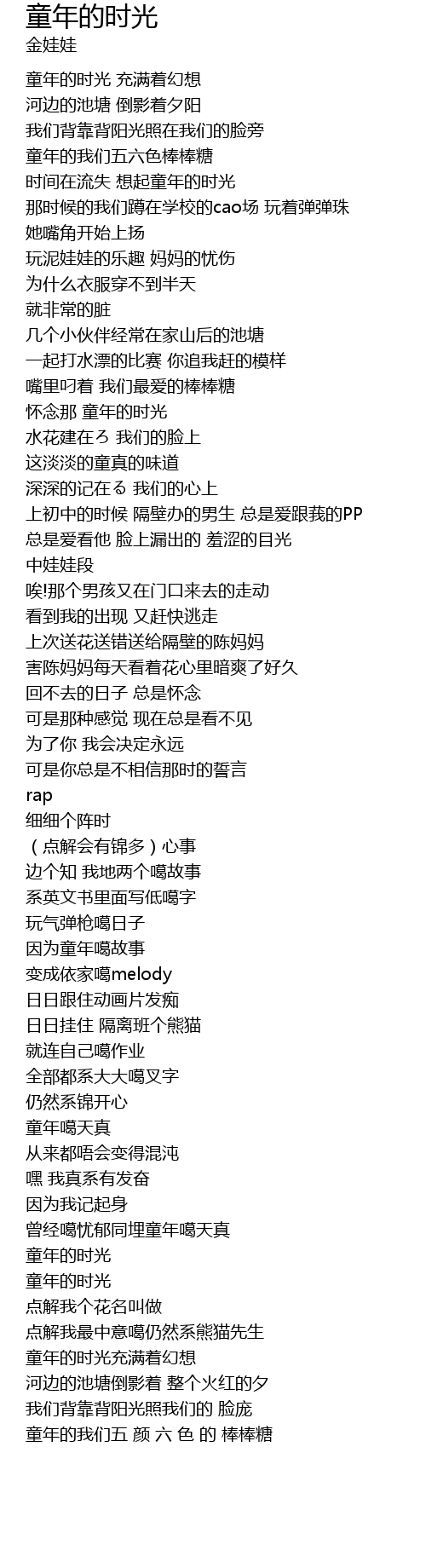 | [02:19.540] | 曾经噶忧郁同埋童年噶天真 |