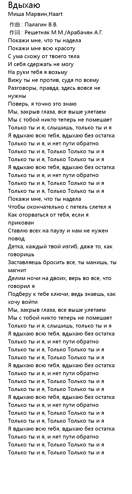 [03:31.00] Я вдыхаю всю тебя, вдыхаю без остатка
