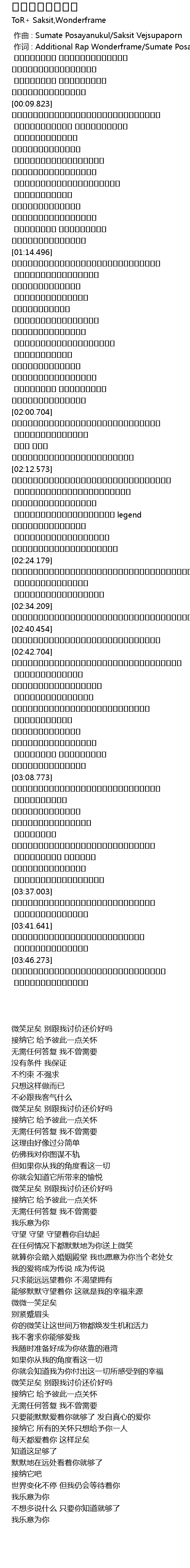 作词 : Additional Rap Wonderframe/Sumate Posayanukul |